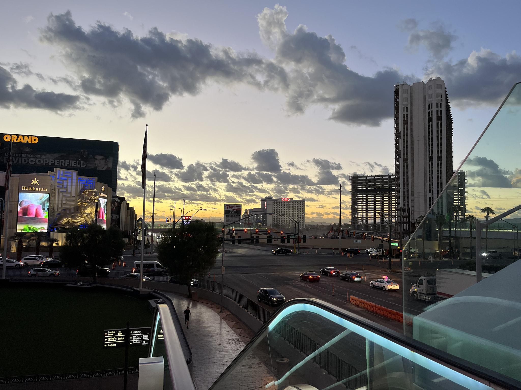Schon auf dem Weg zu Denny’s merken wir, dass heute nichts einfach geht – überall stehen Absperrgitter, Straßen sind blockiert, Arbeiter montieren Tribünen. Las Vegas rüstet sich für die bevorstehende Formel 1, und wir müssen uns ein wenig durchs Labyrinth schlagen, bis wir schließlich kurz nach fünf im Diner sitzen. Rote Ledersitzbänke, freundliche Bedienung und Kaffee, der nie versiegt – typisch amerikanisch und für uns das perfekte Jetlag‑Frühstück. Es fühlt sich an wie in einem Film – nur, dass wir die Hauptrolle spielen: zwei Sachsen auf Koffein, bereit für ihr erstes Abenteuer im Westen.